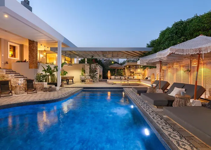 Situat la 10 minute cu mașina de Palatul Guvernatorilor, Vento Imperiale Estate Villa cu 5 dormitoare, invită oaspeții să se relaxeze pe un patio. Oaspeții se pot bucura de biliard la această vilă cu 5 băi, situat la 25 de minute de mers pe jos de Acropole din Rhodos.